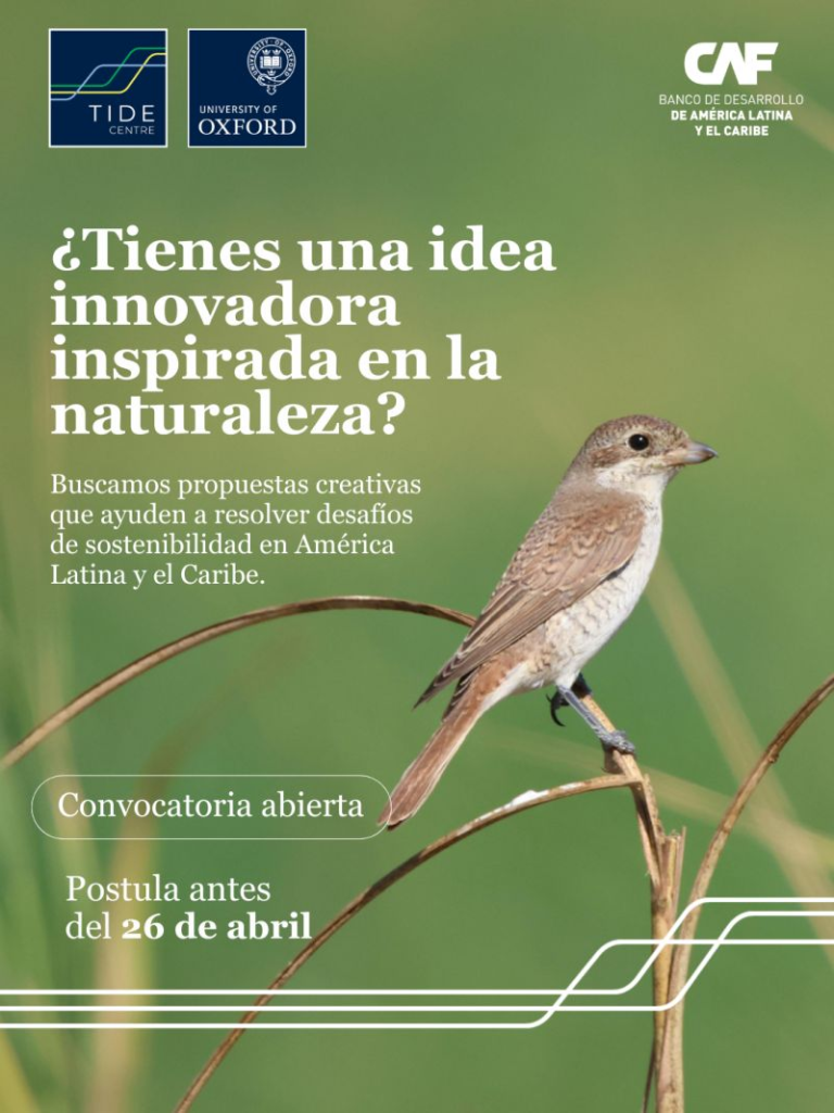 Abierta la convocatoria del Ideatón de Innovación Inspirada en la Inteligencia de la Naturaleza. CAF -banco de desarrollo de América Latina y el Caribe-, en alianza con el TIDE Centre, University of Oxford, invita a investigadores, emprendedores, estudiantes y profesionales