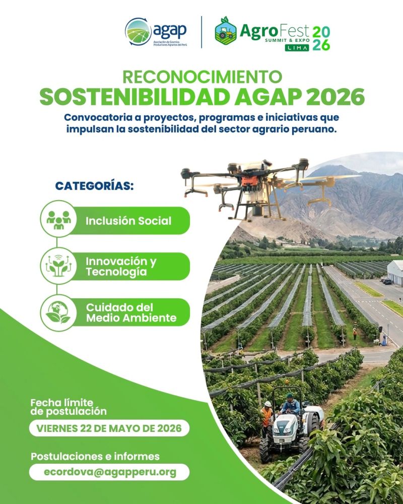Si tu proyecto, programa o iniciativa contribuye a la sostenibilidad del sector agrario peruano, esta es tu oportunidad para visibilizar su impacto. Pueden postular empresas privadas del sector agrario, gremios, asociaciones, cooperativas, organizaciones de productores y también empresas de otros