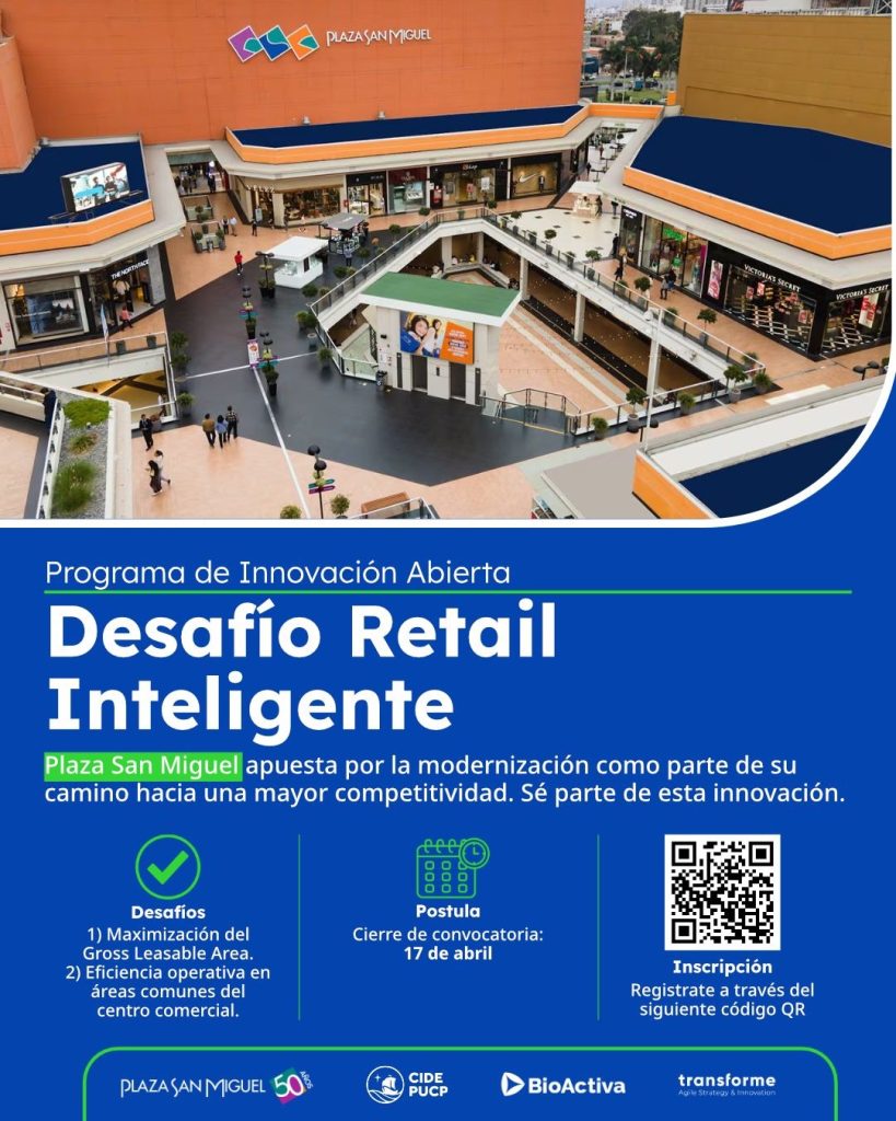 Tenemos 2 desafíos para la Innovación Abierta en Perú:El Centro Comercial Plaza San Miguel se encuentra en la búsqueda de solucionadores tecnológicos que les ayuden a enfrentar sus desafíos; en el marco de su programa de innovación abierta “Desafío Retail