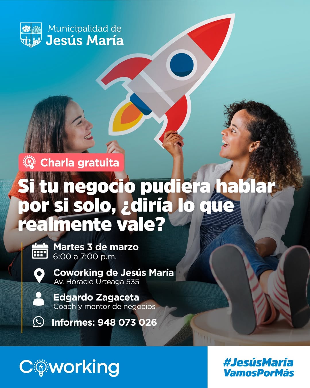 Te invitamos a descubrir lo que realmente vale tu emprendimiento y cómo comunicarlo con claridad y confianza. Este martes 3 de marzo te esperamos en nuestro coworking para una charla gratuita donde aprenderás a presentar tu proyecto con seguridad, conectar con potenciales clientes y destacar en cada oportunidad.